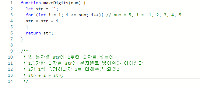 수도코드는 내가 코딩하고자 하는 코드를 논리적으로 생각하고 내가 편한 방식으로 써 내려가는 방법이다. 원하는 곳에 주석을 달고 'num이 5를 받아서 반복문 i가 몇 번 반복하니까···'처럼 자유롭게 써내려갔다. 내가 직접 쓰고 다시 읽고 생각을 반복하면서 코드를 어떻게 수정해야 할지 감이 잡히기 시작했다. 반복문에 어려움을 느낀다면 수도코드를 한 번 써보는 걸 추천한다.