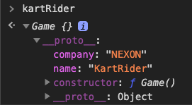 Game.prototype.name = 'KartRider' // prototype공간에 name: 'KartRider' 저장