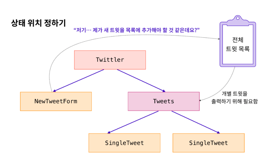 공통 부모 컴퍼넌트에 넣으면 된다 => Twittler