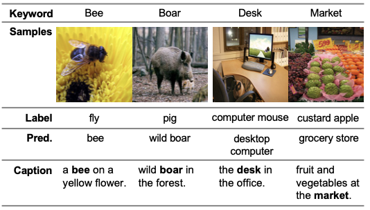 B2T를 통해 “bee”가 “fly”로, “boar”가 “pig”로 잘못 레이블링된 이미지를 발견하였고, 또한 “desk”, “market”과 같이 대체적으로 여러 객체가 한번에 포함되어 모호한 레이블도 판별 할 수 있음.