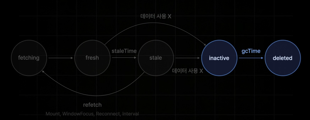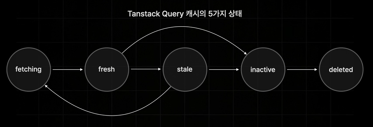 위의 이미지처럼 TanStack Query는 5가지 상태를 가진다.