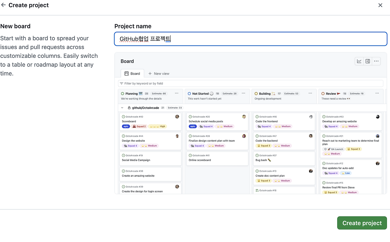 Issue를 기반으로 프로젝트의 모든 기획과 작업이 이루어진다.
