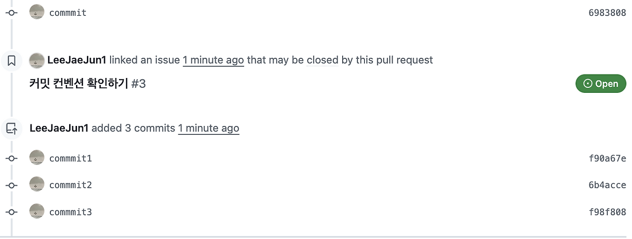 커밋 컨벤션 메세지를 사용하지 않은 경우