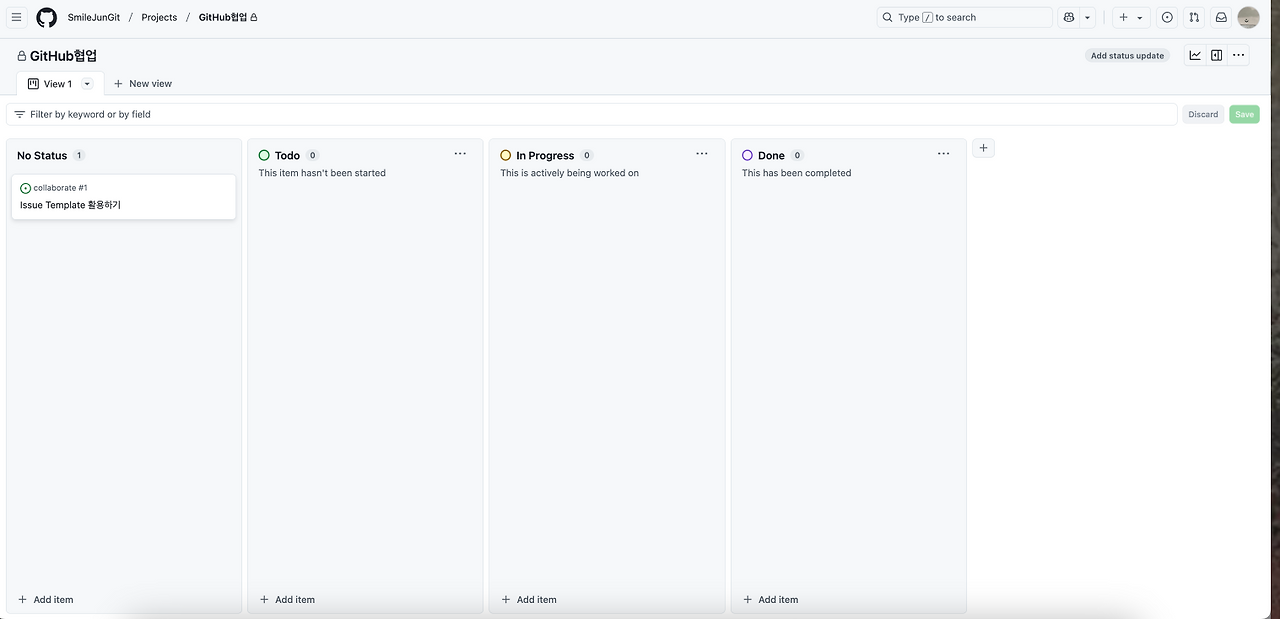 Table, Board, Roadmap 등 여러가지 템블릿이 있는데 원하는 양식을 선택하면 된다.