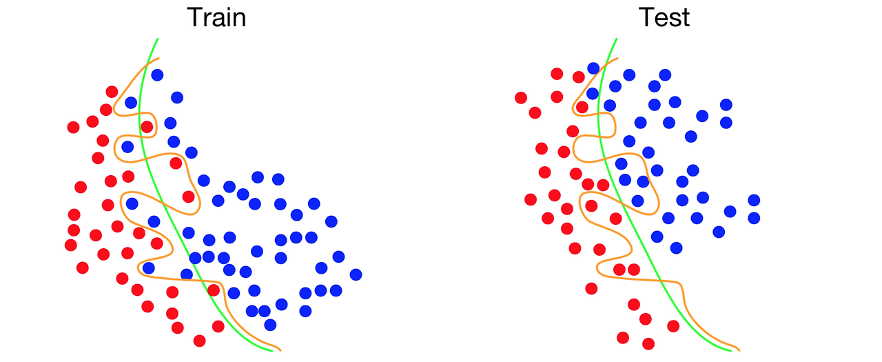 • 주황색 선은 Train에서는 정확도가 100%, Test 에서는 오류가 난다.