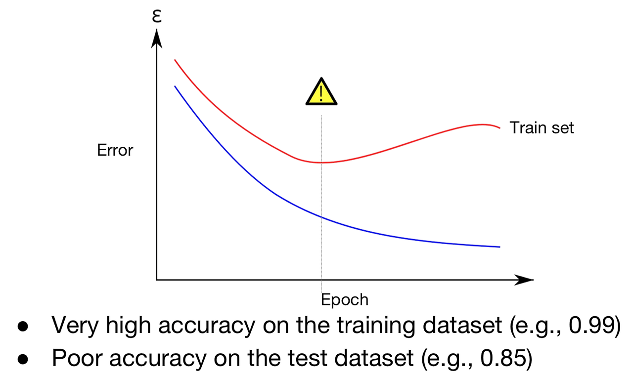 • Train set에서는 한 번도 보지 못한 데이터가 있을 수 있기 때문에, train set에 집중하게 되면 실제로 분류햇을 땐 오분류가 나타나 성능이 좋지 않을 수 있다.