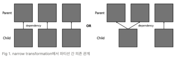 - 스테이지를 나누는 기준은 Wide transformation, narrow transformation 이 있음
