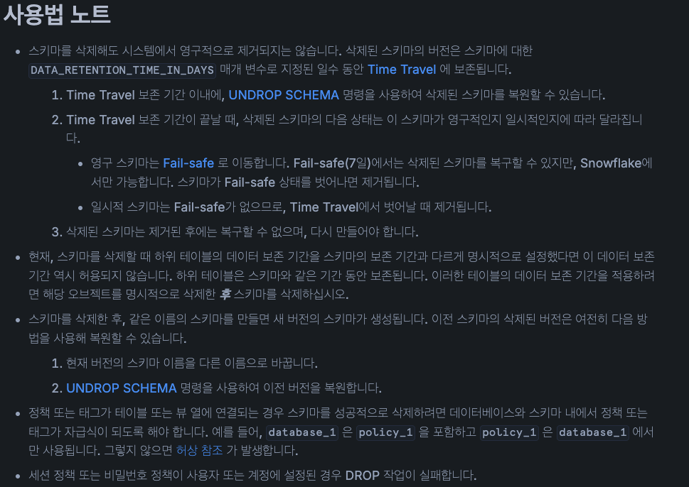 https://docs.snowflake.com/ko/sql-reference/sql/undrop-schema