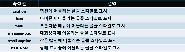 family> | caption | icon | menu | message-box | small-caption | status-bar