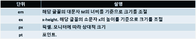 ▪ font-size에서 사용하는 단위는 아래와 같다.