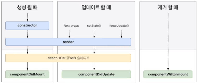 Life Cycle은 "컴포넌트가 생성, 업데이트, 삭제 될 때 일어나는 일련의 과정"들이고, 각 단계의 전, 후로 미리 지정되어 있는 특정 생명주기 메소드들이 실행