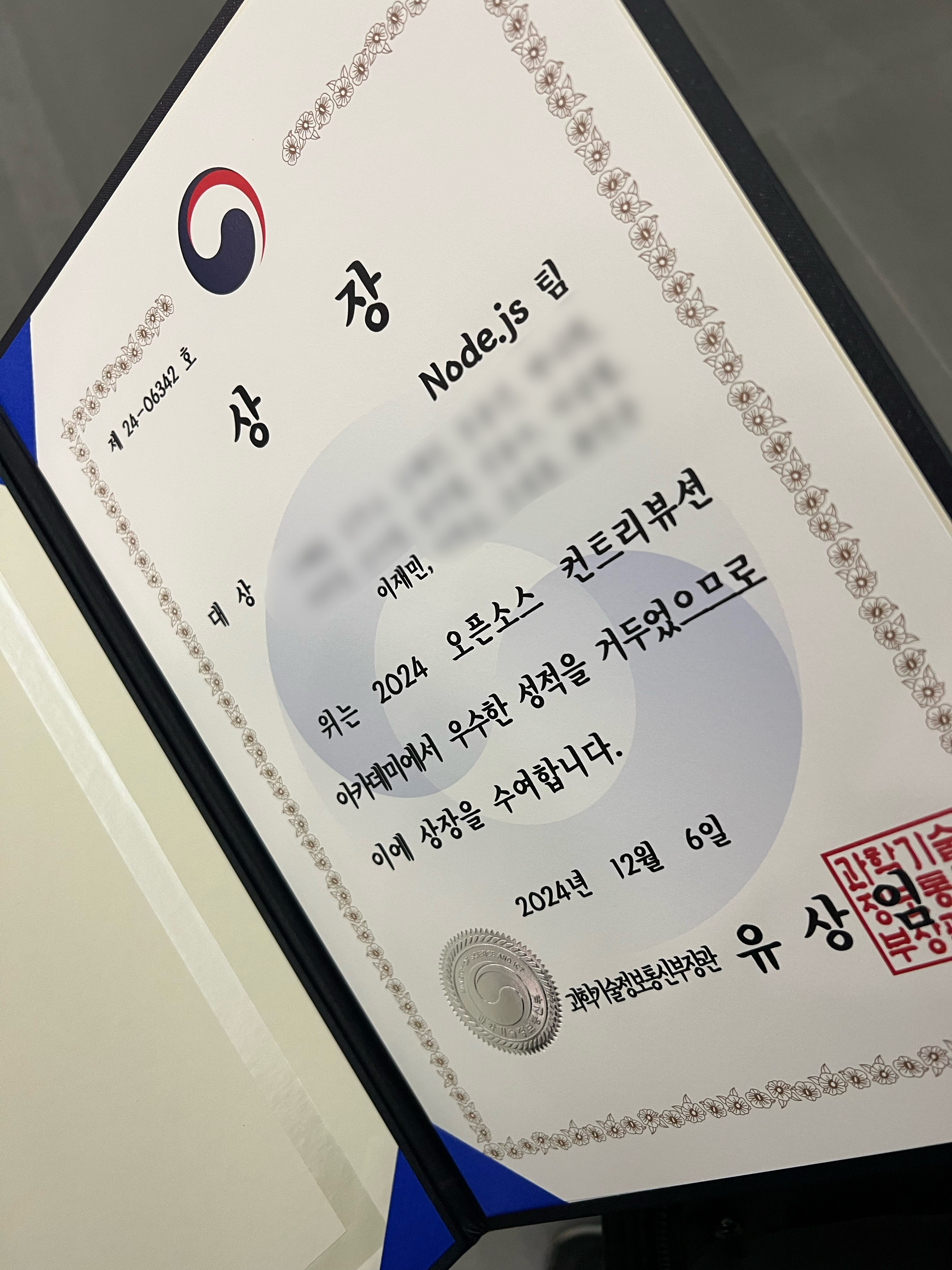 이 후 시상식은 12월 6일 코엑스에서 진행되는 오픈소스 페스티벌 2024에서 진행된다고 하여 연차를 쓴 후 시상식에 참여하였습니다.