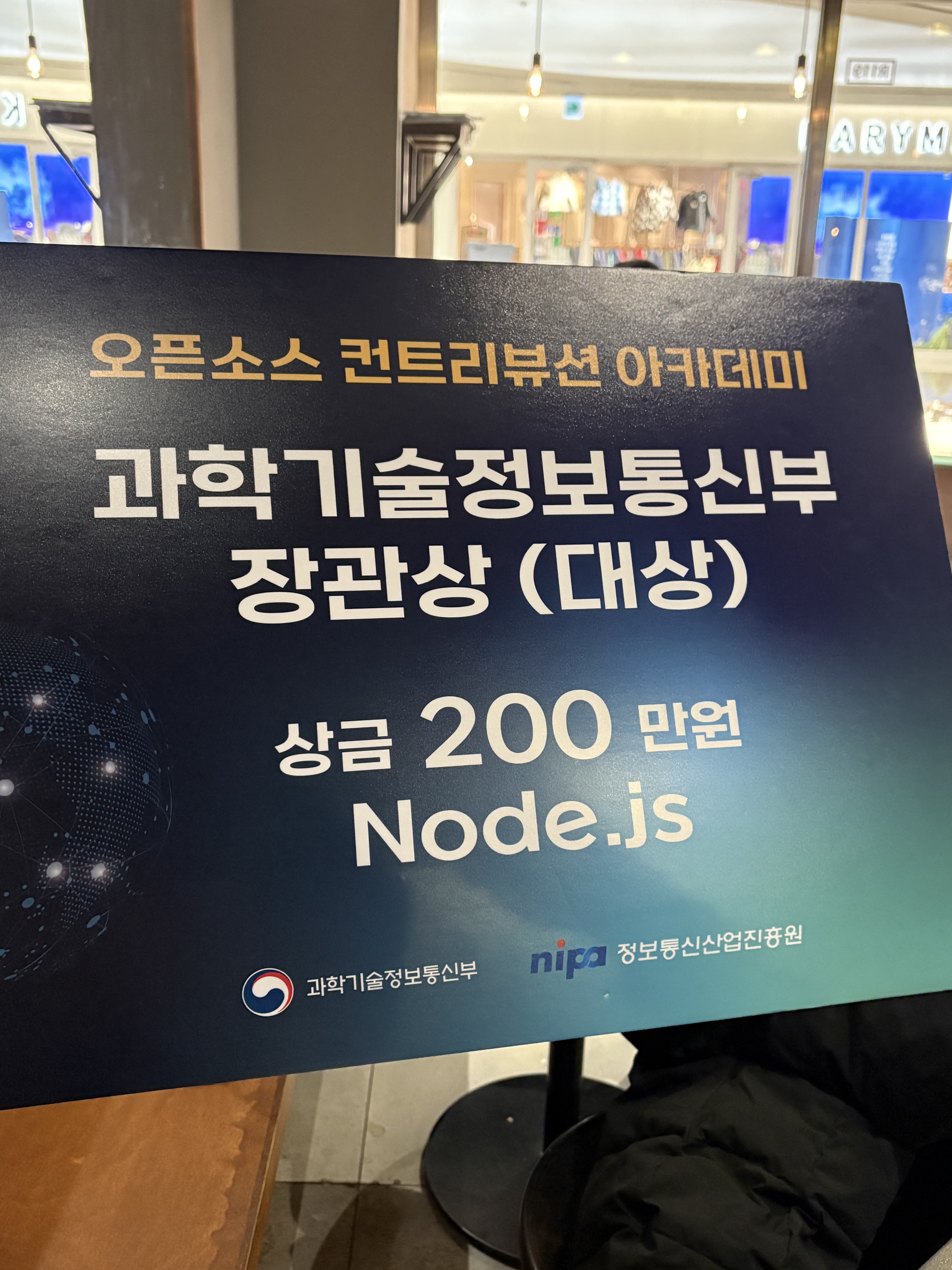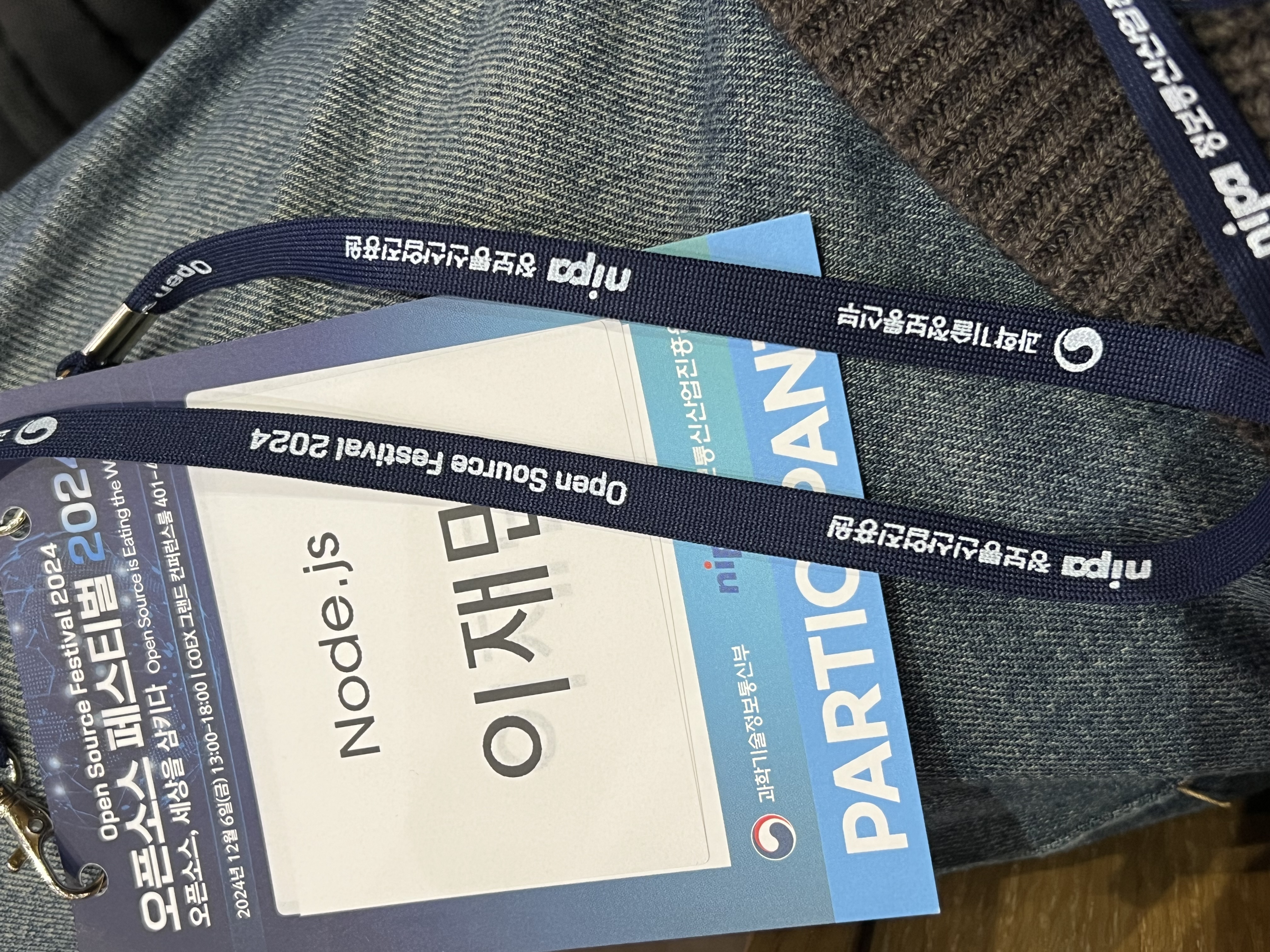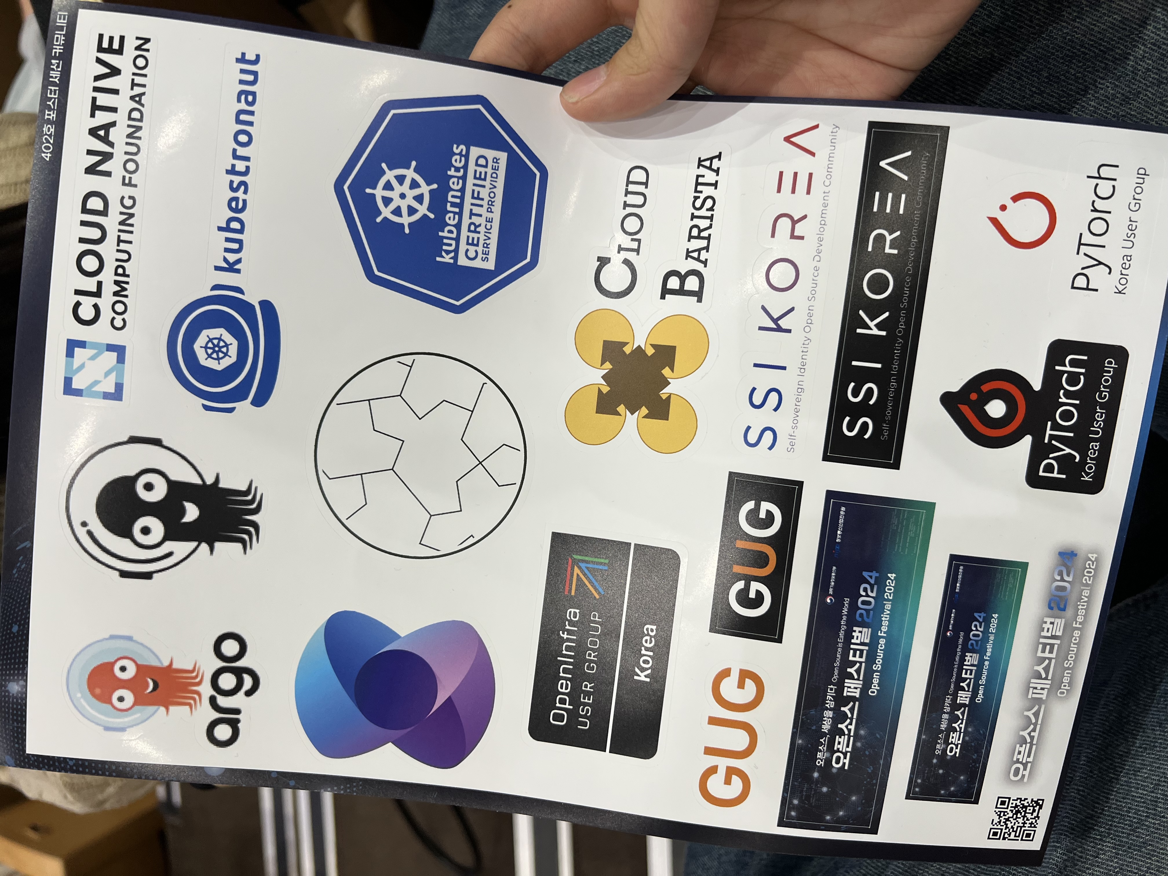 이 후 스티커도 받았습니다 node.js 관련 스티커는 없어서 아쉽긴 하였지만 ! 저 오픈소스 페스티벌 2024 스티커를 가져서 나쁘지 않았습니다