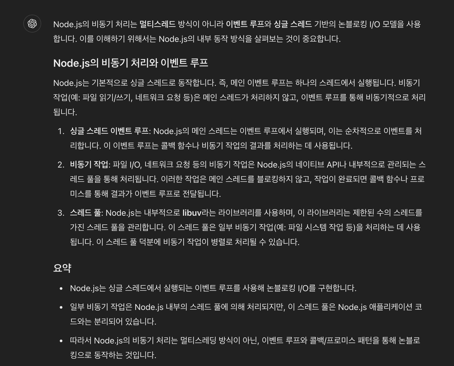 - 비동기 처리로 개선 가능: 비동기 처리를 도입하면 동시 연결 수를 늘릴 수 있지만, Node.js의 기본 구조만큼 효율적이지는 않을 수 있습니다.