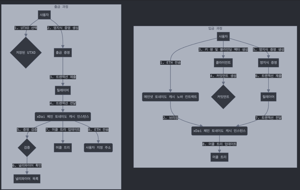 사용자가 직접적인 블록체인과의 상호작용을 하지 않아서 추적할 수 없도록 함