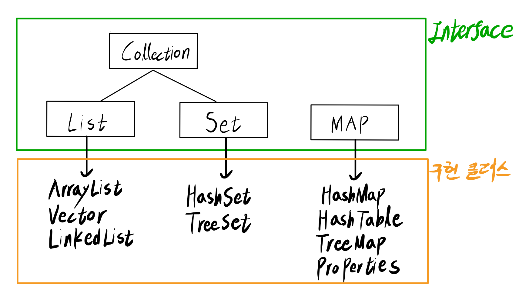 컬렉션(Collection)은 객체의 저장을 뜻하고, 프레임워크(Framework)란 사용 방법을 저장해놓은 라이브러리를 말한다.
