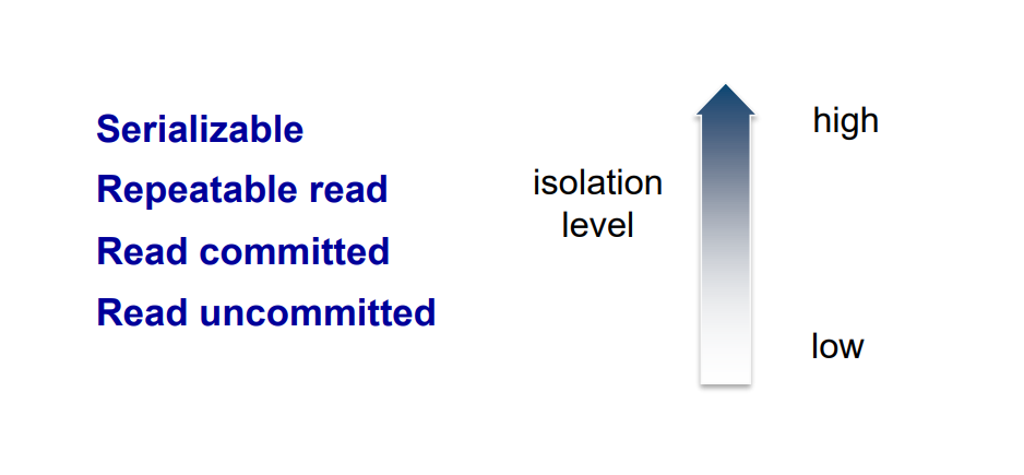 Serializalbe 이 가장 높은 등급은 일관성을 보장하고 , Read uncommitted 는 가장 높은 동시성을 보장한다.
