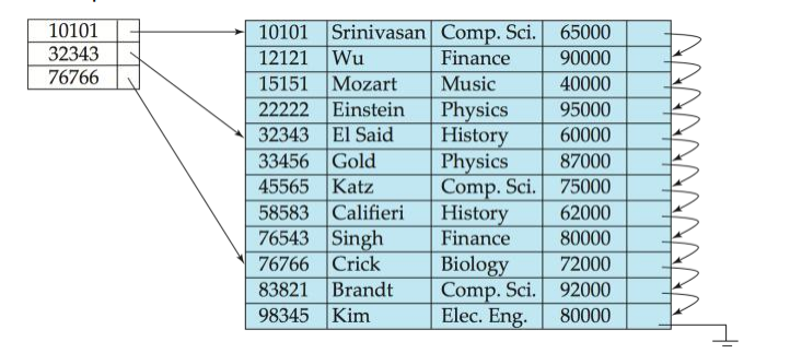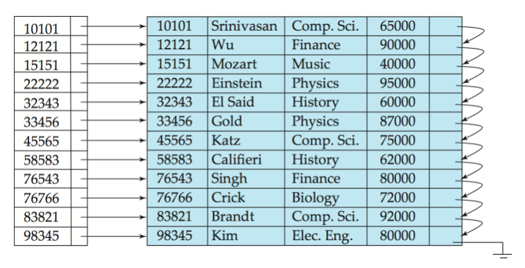 Primary Index ( = Clustering Index ) : 파일 안에서 레코드가 순서대로 읽힐수 있도록 하는 Index (표시)