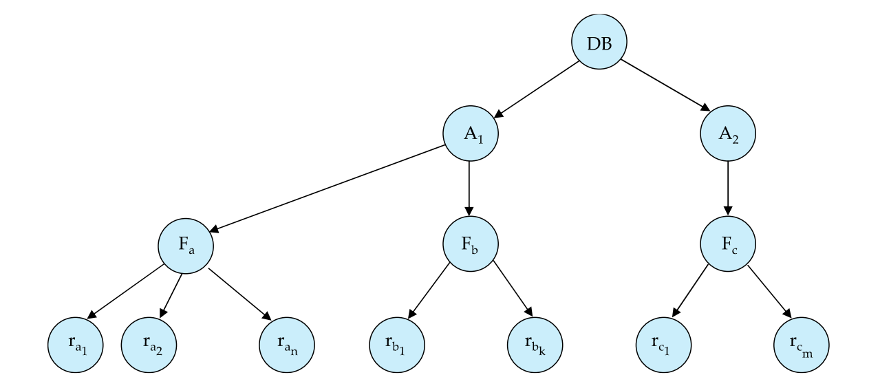 그림을 보면 위에서부터 상위 DB , Area (A) , File (F) , 하위 Record(F) 수준으로 나눈다.