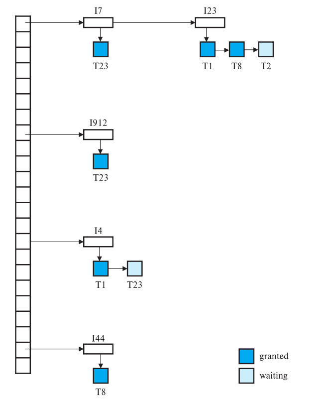 예를 들어, T1이 X-lock을 요청하여 데이터 항목 A에 배타적 잠금을 걸면, T2는 그 데이터 항목 A에 대해 읽기/쓰기를 할 수 없다.