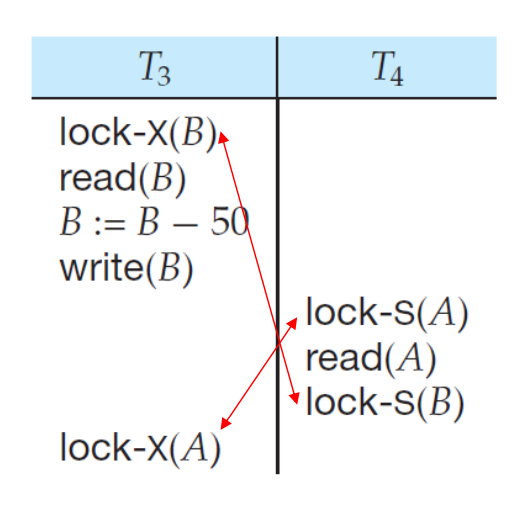 T2: read(X) (T1이 자원을 점유하고 있으므로 대기)