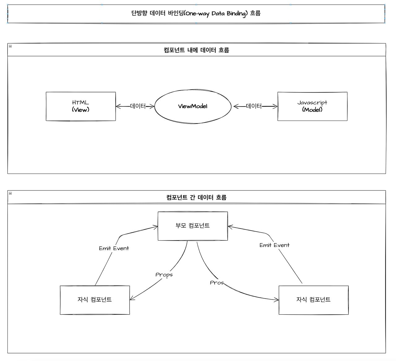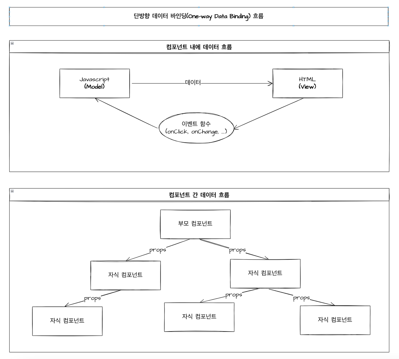 리액트는 “하향식(top-down)” 또는 “단방향식” 흐름이다.
