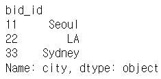 ✔ 레이블 이름이 city인 열에 접근