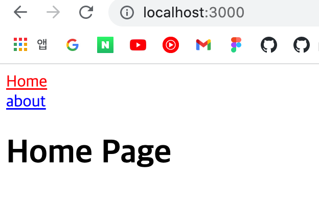 (Home("/")에 있을 때에 빨간색으로 변한 모습)