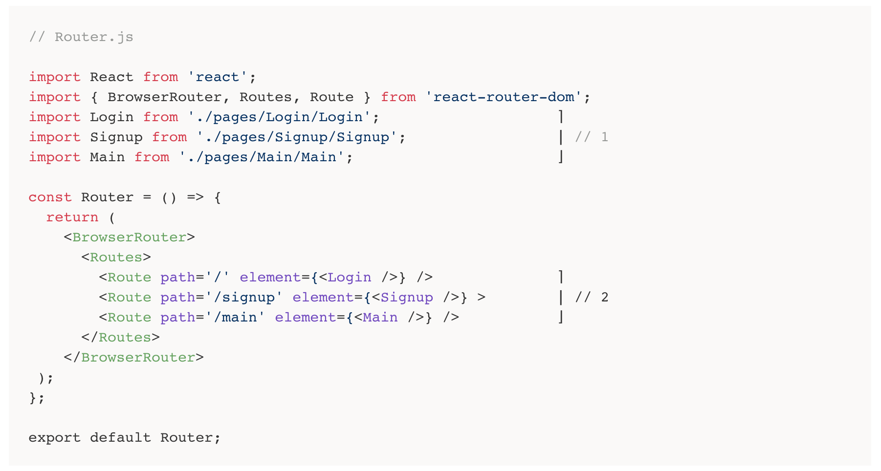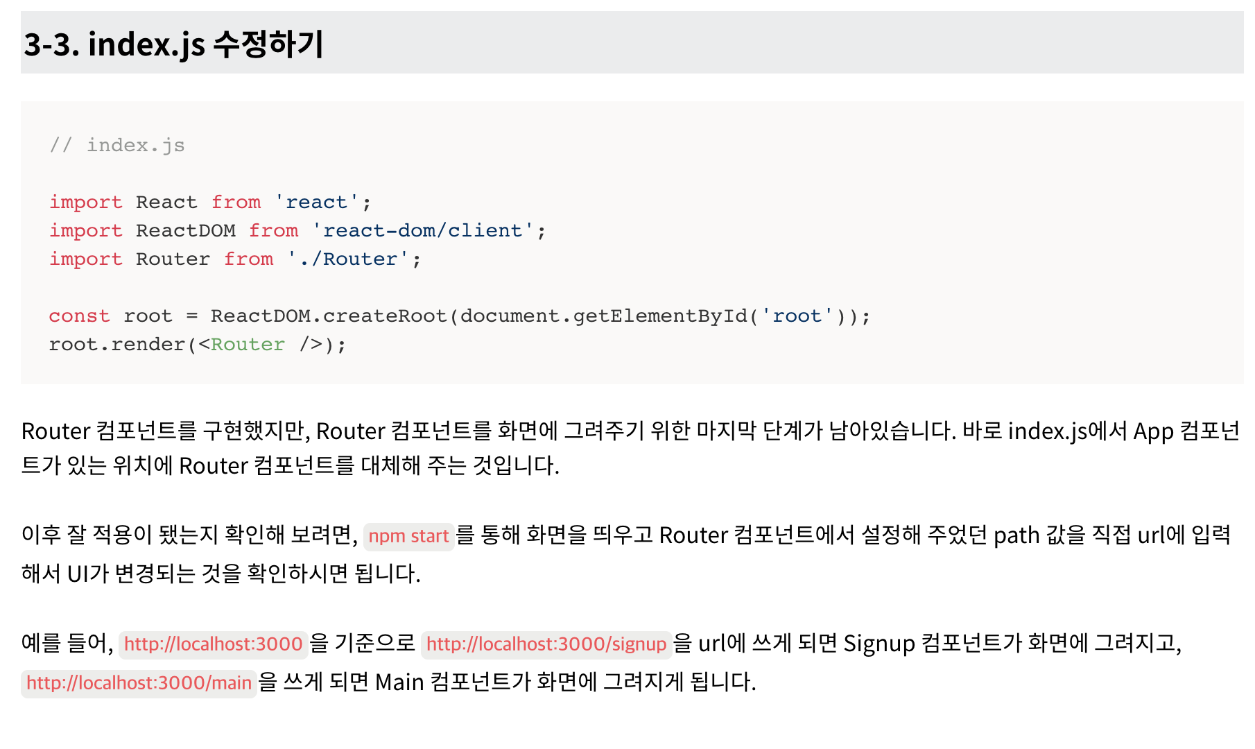 BrowserRouter로 컴포넌트 전체를 감싼다.Routes 컴포넌트를 넣어준다.Route 컴포넌트를 넣어준다.