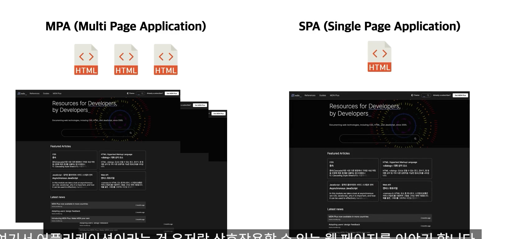 SinglePageApplication은 페이지(html)가 1개인 웹 애플리케이션이다.