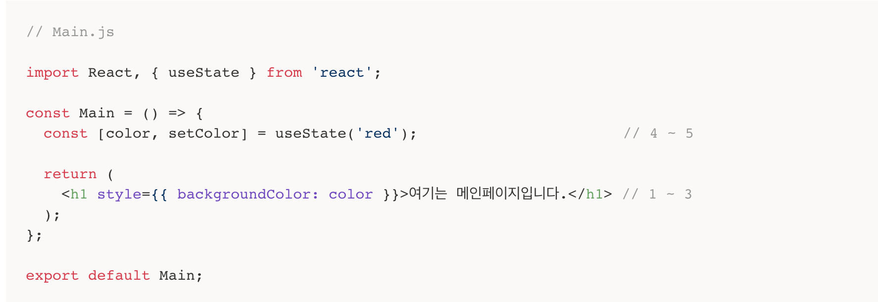 useState hooK호출하고, 구조 분해 할당을 통해 반환된 값을 사용할 수 있다.