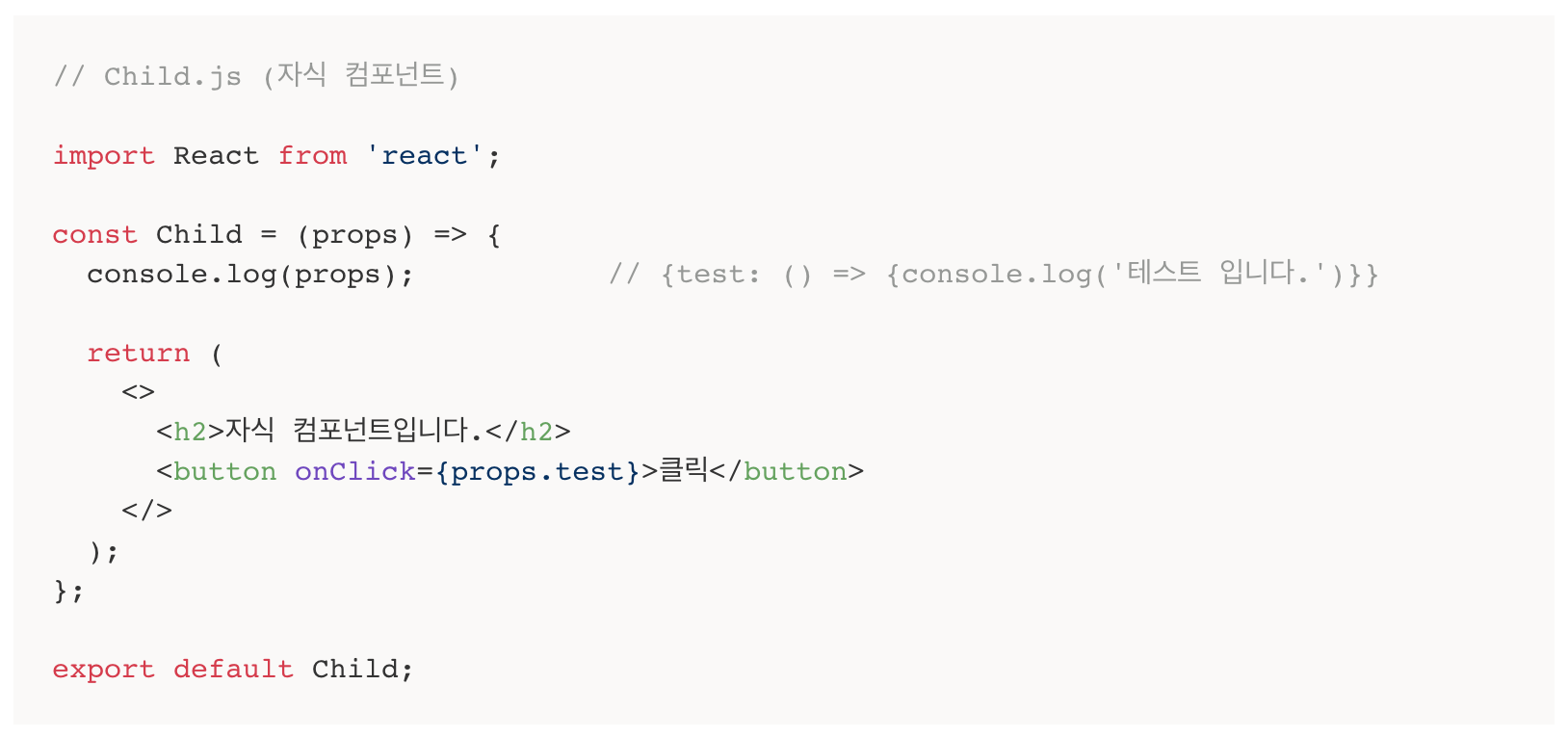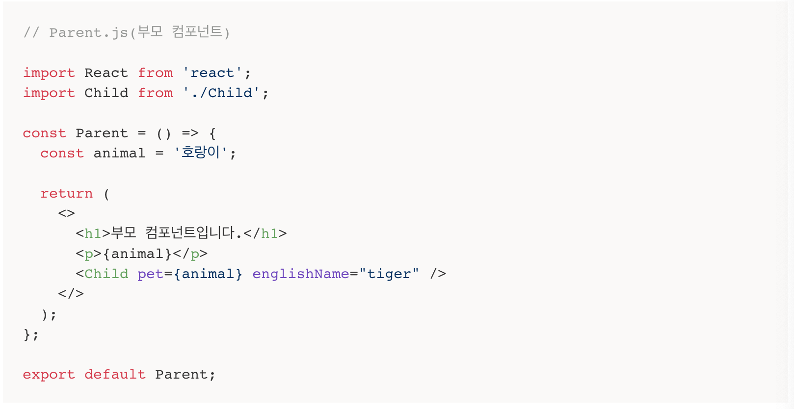 props란 부모 컴포넌트로부터 전달받은 데이터를 지니고 있는 객체를 의미한다.