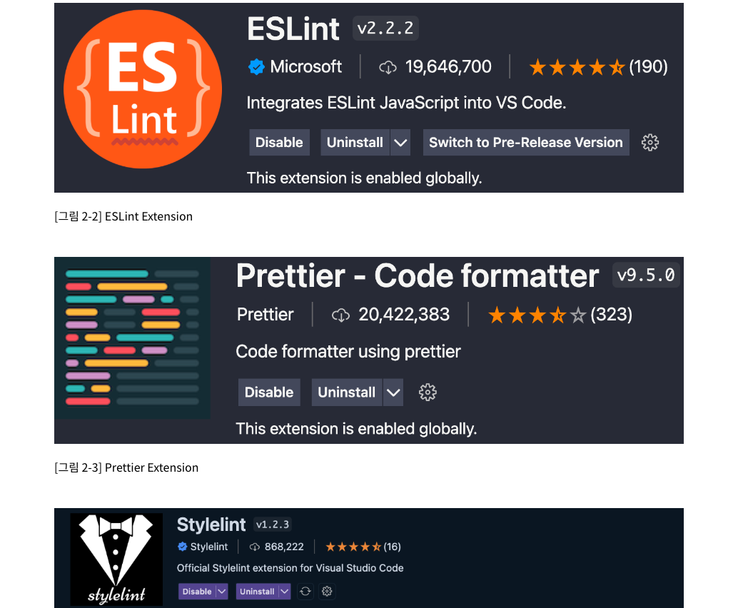 JS Lintter(ESLint), Style Lintter(Stylelint), Code Prettier(Prettier)
