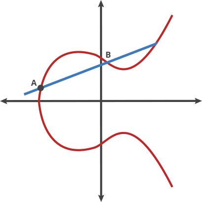 where (a) and (b) are constants. One of the unique properties of elliptic curves is that if you take any two points on the curve and perform an operation known as "point addition," the result will always be another point on the curve.