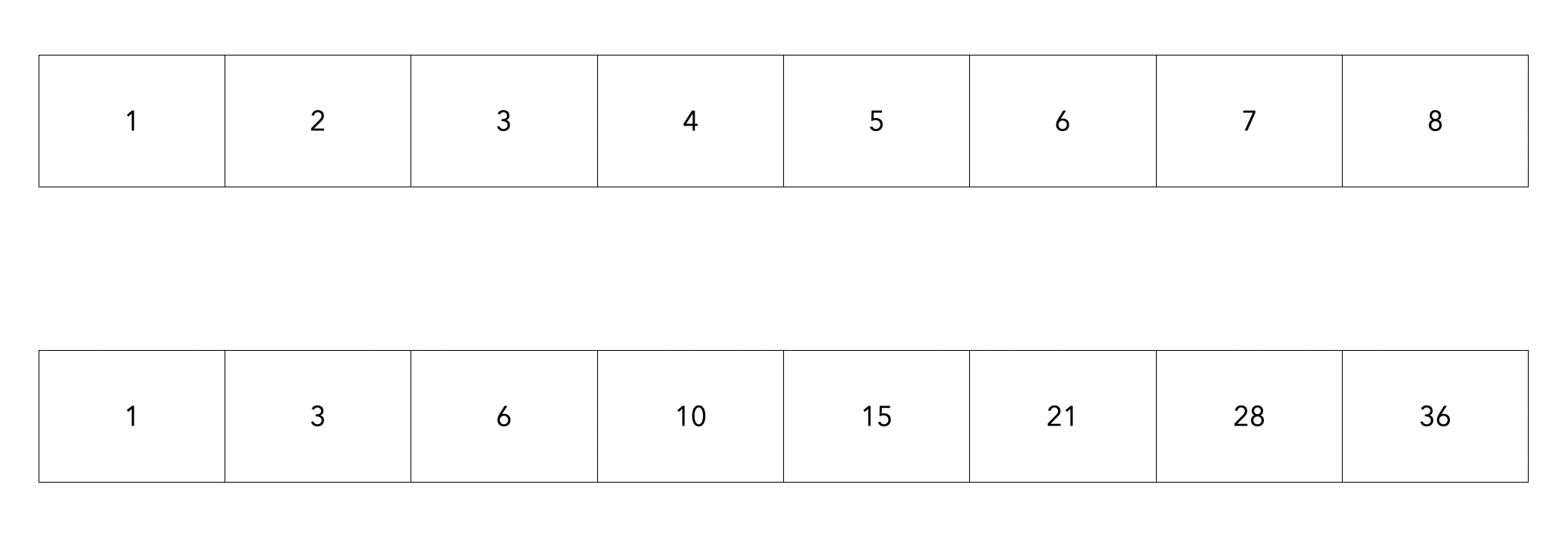 누적합의 배열은 다음과 같이 구성됩니다.