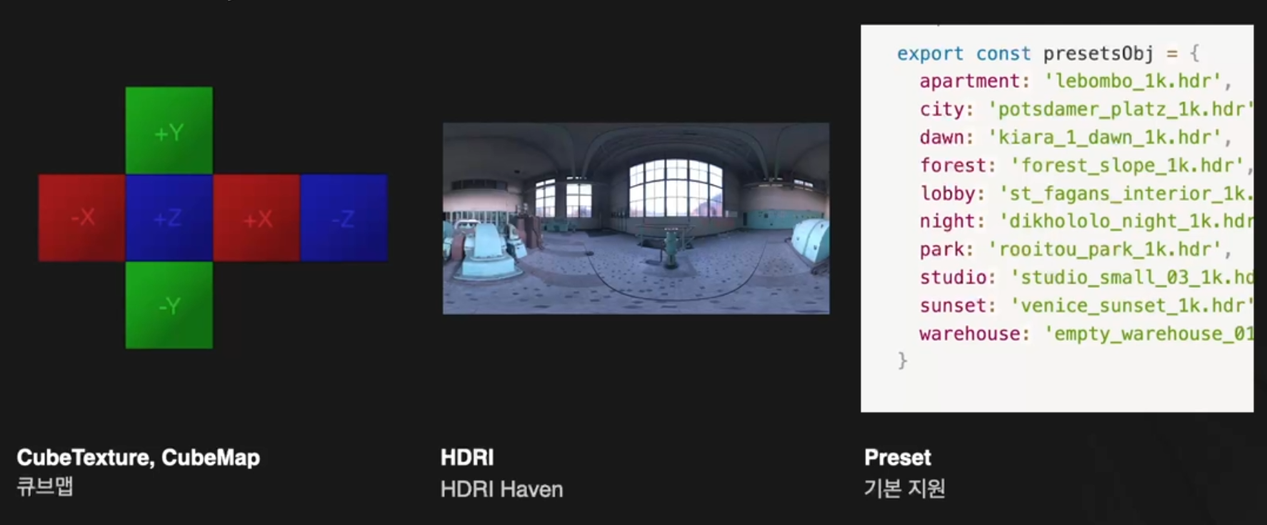// 배열로 cubemap 을 넣던지 HDRI 파일에 경로를 통해서 에셋 import 해오는 곳
