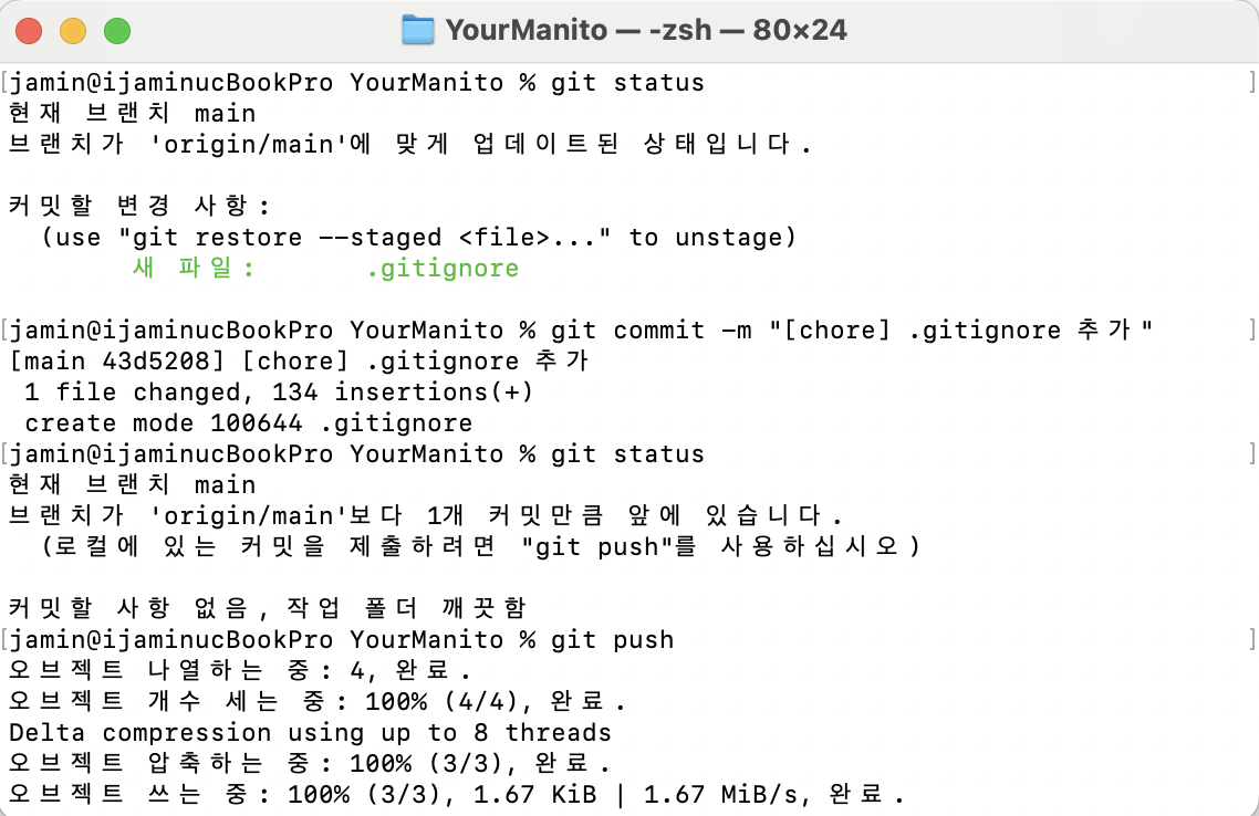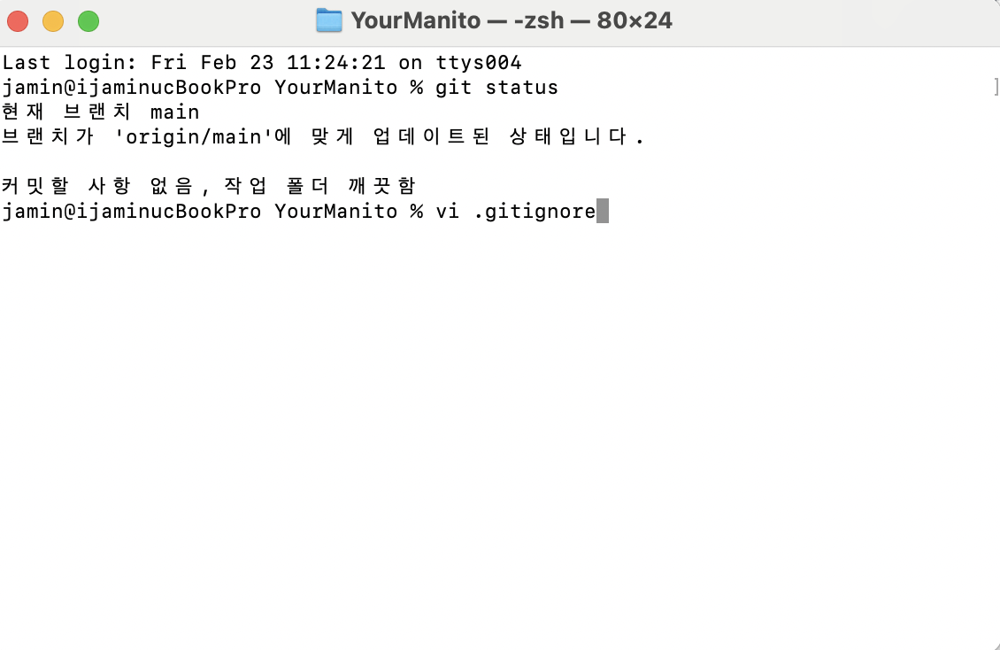 - 복사해둔 gitignore 텍스트 붙여넣기