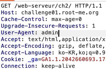 User-Agent 값의 변경을 통해 admin 브라우저로 인식되게 하면 풀리는 것 같다.
