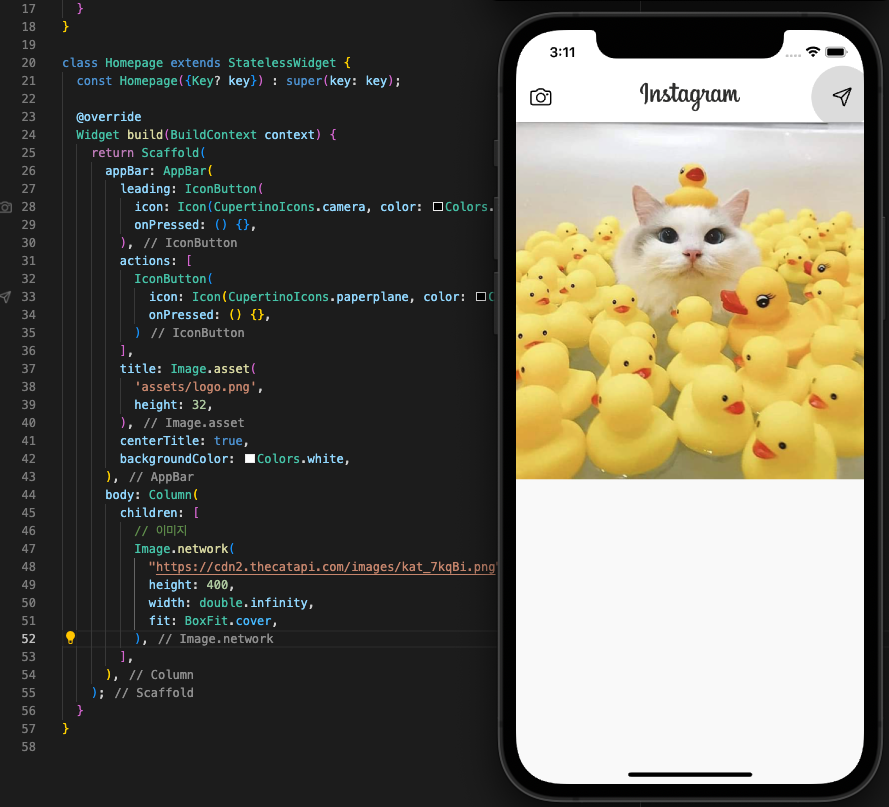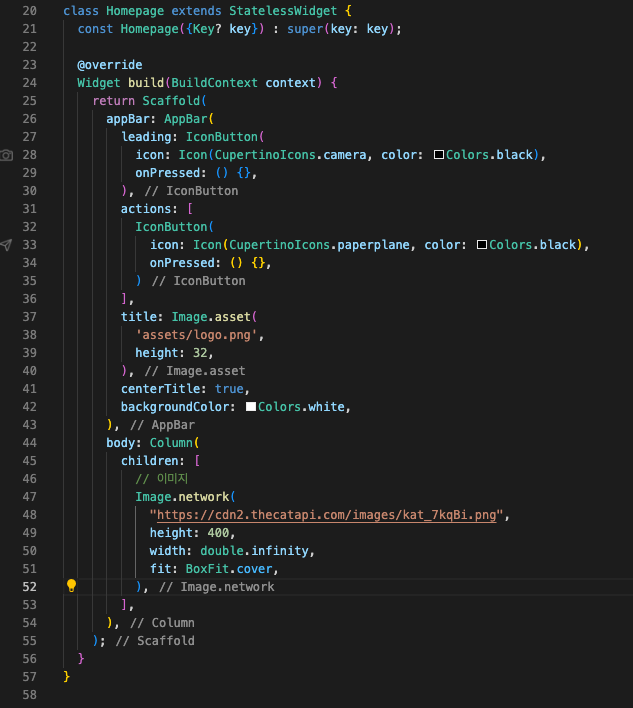 pubspec.yaml에 그 이미지의 위치가 어디인지 정의가 필요 (현재는 코드 스니펫을 붙여넣으나, 추후에는 어떻게 정의하는지 알 필요가 있음)