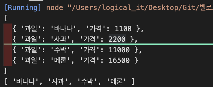 console.log를 찍어보면 배열2는 속성만 변경하여 다시 객체를 반환했기 때문에, 배열2 변수에는 객체 요소로 구성된 배열이 반환된 것을 알 수 있어요.