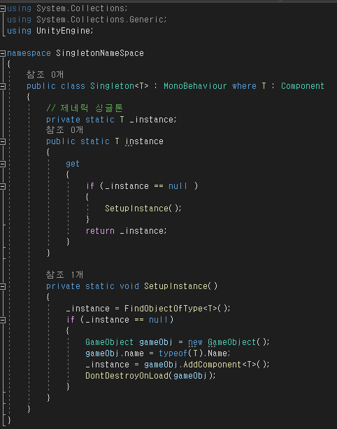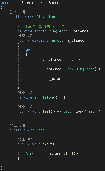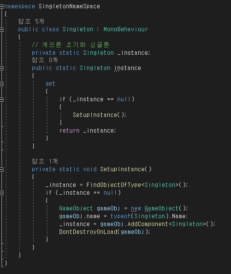 유니티에서 구현할 수 있는 게으른 초기화 싱글톤