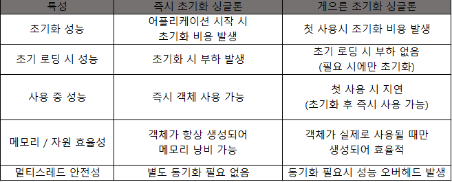 - 인스턴스를 미리 생성하는 싱글턴 방식이다.