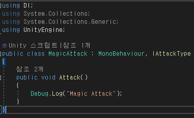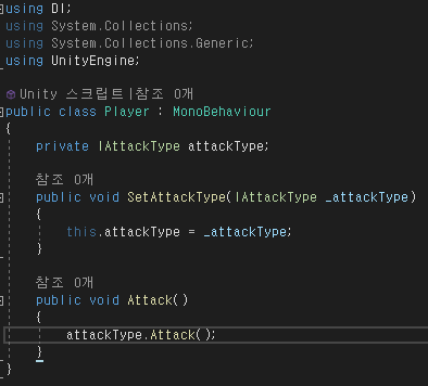 컴포넌트를 드래그 드롭으로 스크립트에 연결하는 것도 넓은 의미에서 의존성 주입
