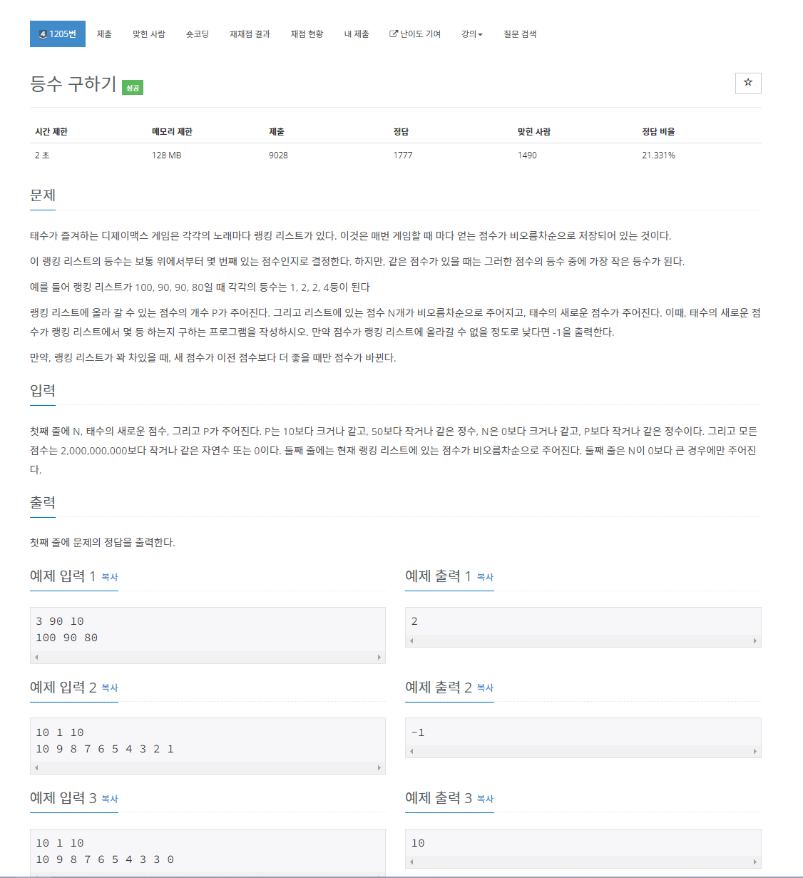 int n, score, p, res = 0; // 랭킹목록, 태수점수, 랭킹개수