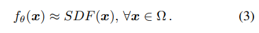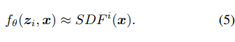 디코더(Decoder): 예측된 SDF 값을 사용하여 3D 공간의 점들의 SDF를 생성한다.