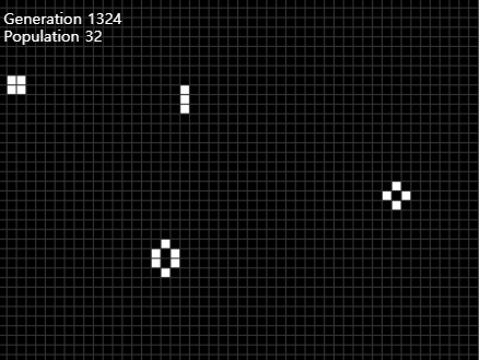 "Game of Life"의 세계관은 무한히 확장되는 2차원의 직교 격자(grid)로 이루어져 있다. 각 격자는 두 가지 상태만 가질 수 있고, 살아있거나(live) 상태 또는 죽은 상태(dead)의 경우만 있다. 각 격자는 수평수직대각선으로 인접한 여덟 개의 이웃한 격자들과 상호작용한다. 각 시간 단위마다 Grid의 상태에 따라 변화가 일어난다: