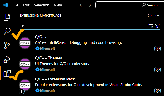 01 VS Code > View > Extension > C/C++ 과 C/C++ Extension Pack 확인