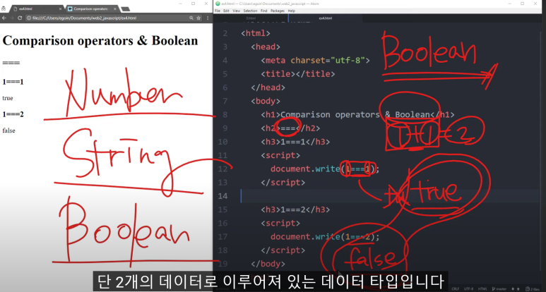 Boolean은 단 2개의 데이터로 이루어져 있는 데이터 타입 (true, false)