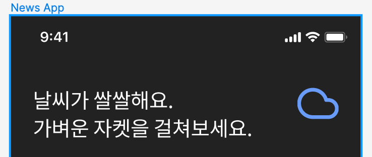 하단 탭바에 카드가 가려져 타이틀과 본문 삽입이 쉽지 않으므로 News App 프레임 오른쪽으로 살짝 카드를 빼고 작업이 끝나면 다시 화면 안으로 넣어줌