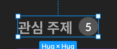 관심 주제 와의 간격은 6px로 설정 / 제목은 나중에 변경될 수도 있으므로 어떤 길이의 제목이 와도 간격이 유지될 수 있도록 '관심 주제'와 배지를 함께 선택하여 오토 레이아웃을 한 번 더 적용